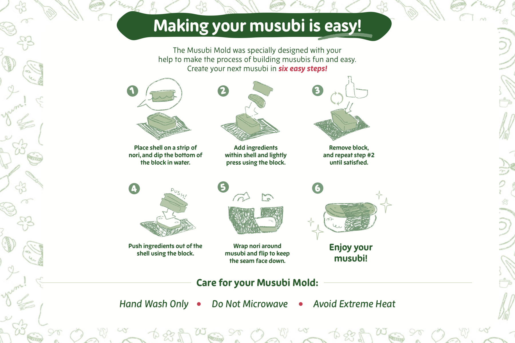 Share your recipes by tagging #mymusubi on social media!