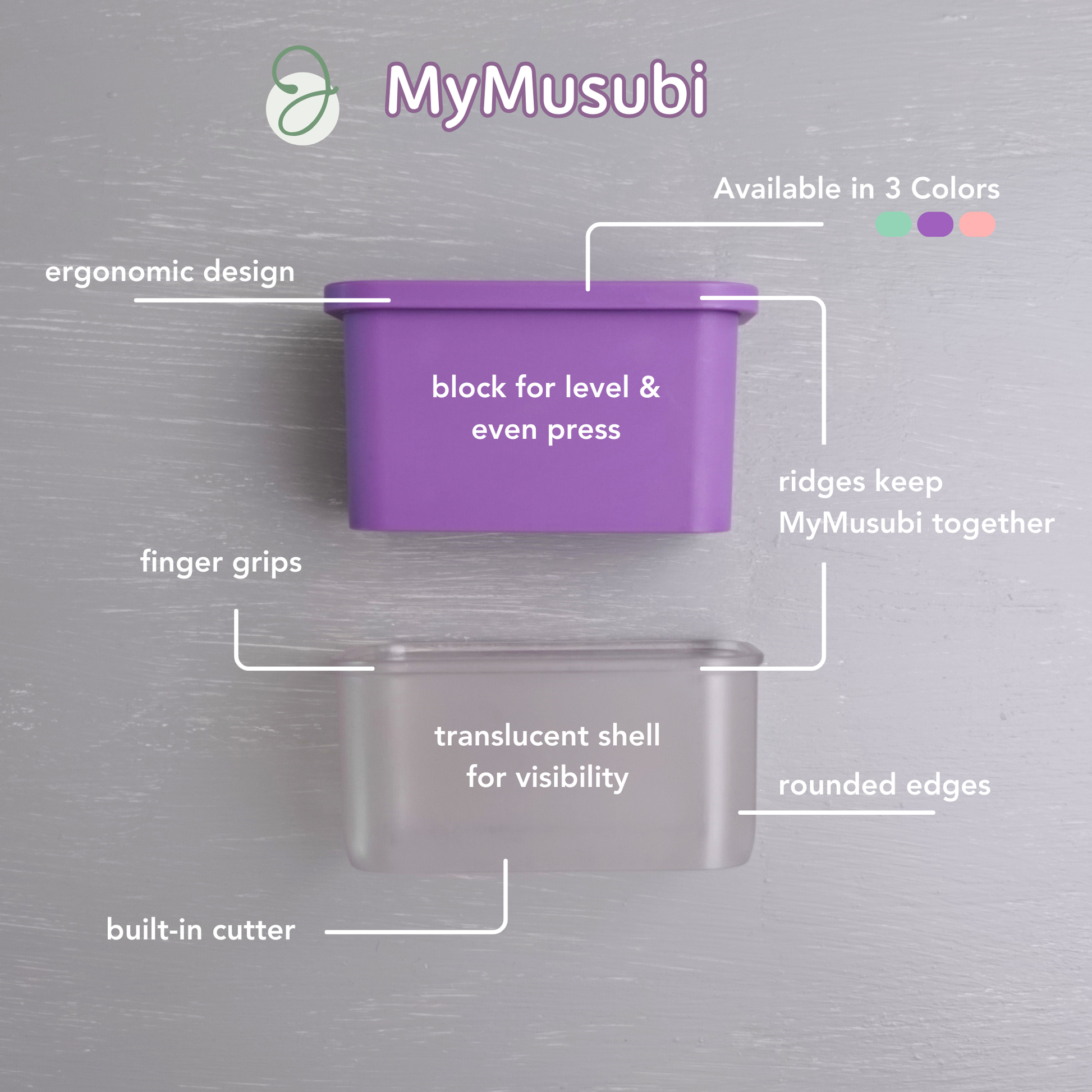 In the last couple of years, we worked with designers to create MyMusubi's unique design, and invested in custom machinery to bring you the most convenient and beautiful mold.
